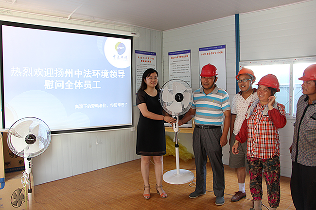 连日来,扬州地区高温酷暑,骄阳似火。8月4日下午,洁源公司总经理张颖带队到污泥干化项目工地开展了慰问工地建设者活动,并为他们送去了防暑降温物品,让坚守在生产一线的工人实实在在感受到了公司领导的关爱。
