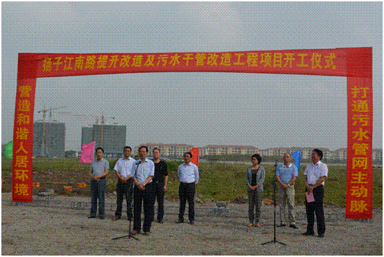 9月26日上午8点48分,扬子江南路污水干管改造(春江路—华扬路)正式开工,市政府康盛君秘书长、市城控集团刘晓明董事长以及市发改委、国资委、环保局、规划局等部门和单位的代表参加了仪式。康盛君秘书长宣告正式动工启动,标志着该项目正式开始实施。