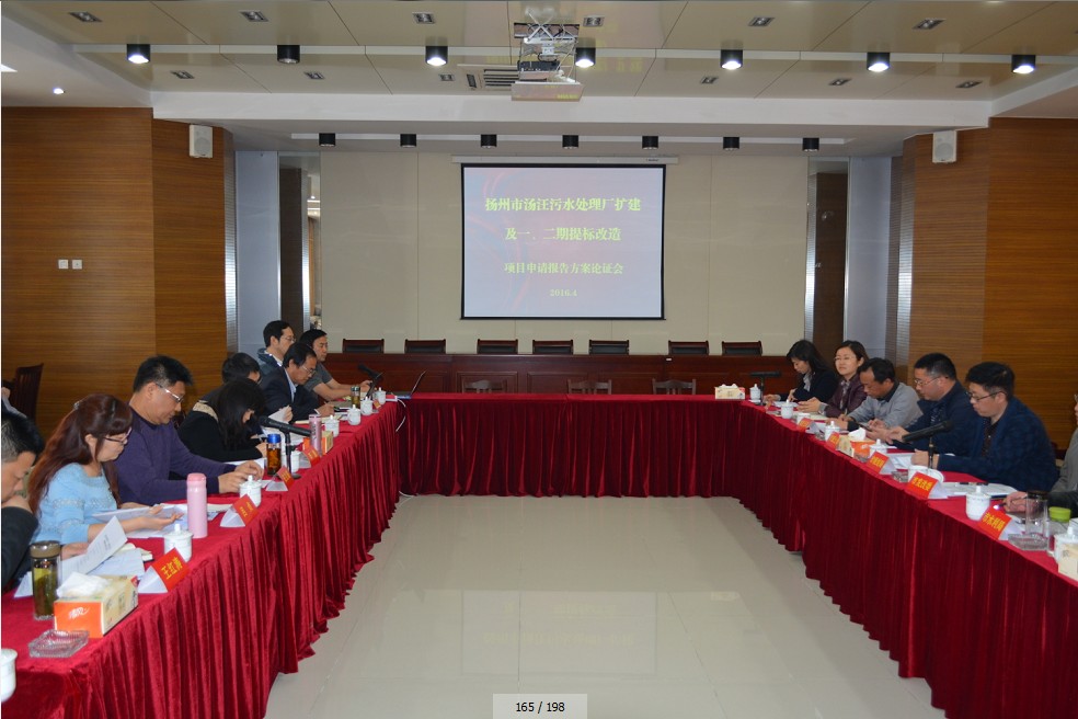 4月8日上午,洁源公司在六圩污水处理厂会议室组织召开了汤汪污水处理厂三期工程方案论证会,会议邀请了市发改委、建设局、环保局、规划局、国土局、水利局及集团公司等单位共同参加,也邀请了来自南京、无锡、常州等市的5位专家参与讨论和论证。与会单位及专家听取了市政工程华北设计研究院《汤汪厂三期工程建设方案》的汇报,认真审阅了相关技术文件并进行充分讨论,一致认为:该项目建设方案依据充分,资料较为详实,在修改完善后可以作为下一阶段设计指导;生物处理工艺采用改良AAO+深度处理符合当前实际合理可行。同时,针对方案中出现的不足之处,各位专家以及相关单位代表当场提出修改意见,并将修改意见汇总编入专家组评审意见。