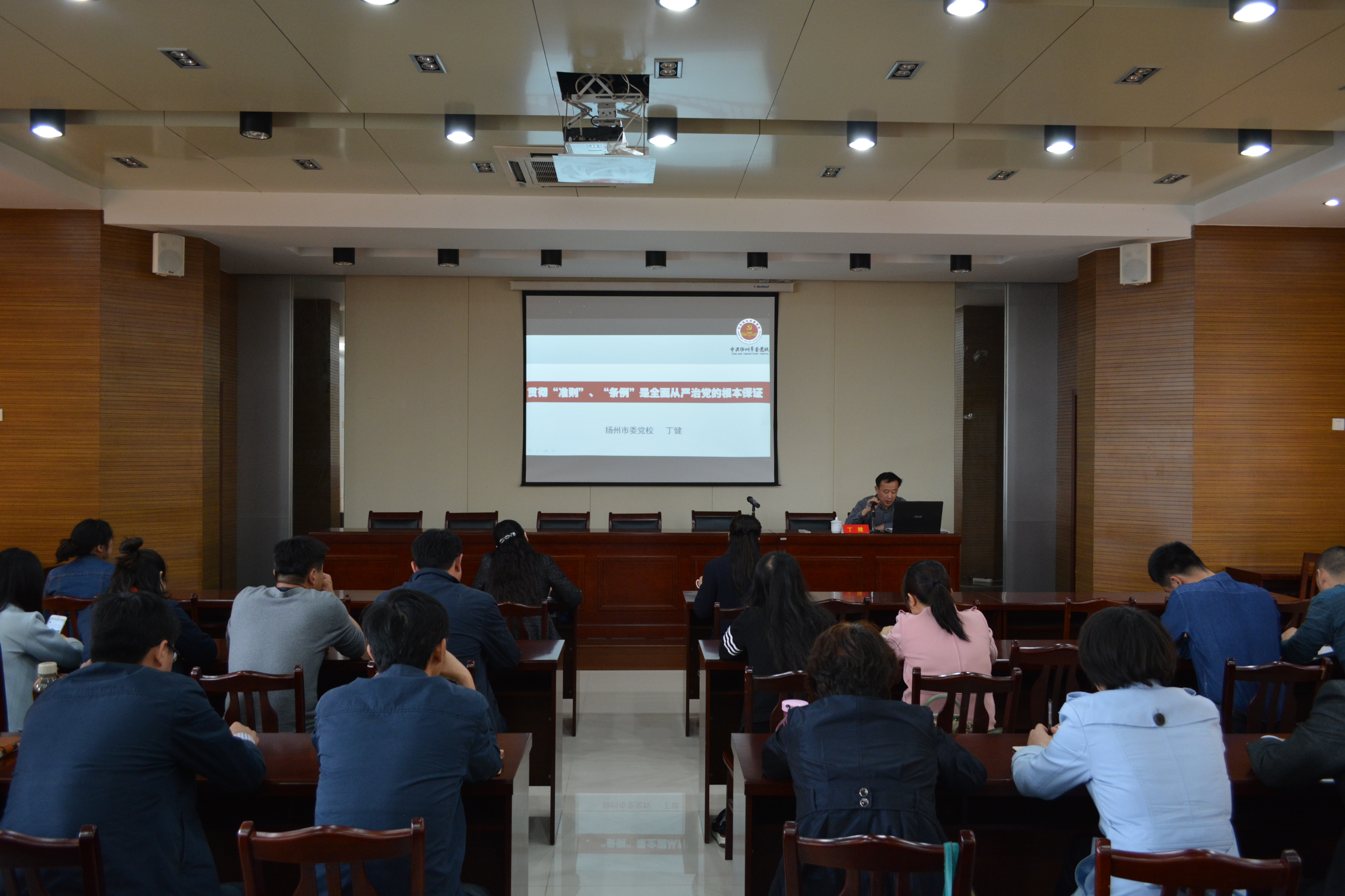 为进一步提高公司党员干部的廉洁自律意识,在我市第七个“5.10”党风廉政教育日来临之际,洁源公司联合党总支邀请了市委党校丁健教授,于5月13日下午,对联合党总支共计约60余名党员干部开展了《中国共产党廉洁自律准则》及《中国共产党纪律处分条例》专题党课教育活动。