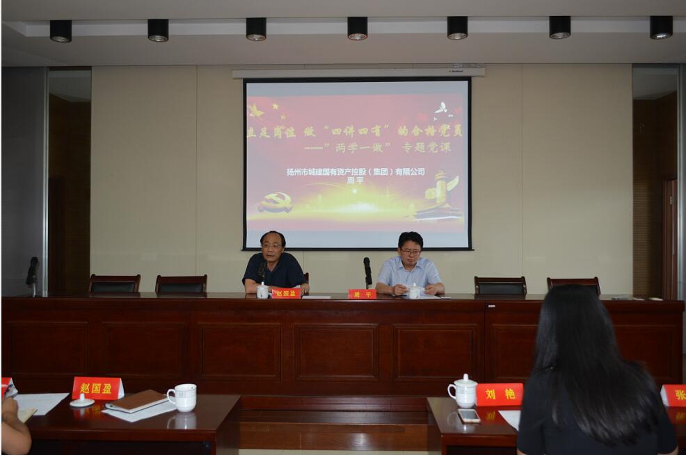 为贯彻落实中央提出的学党章党规,学系列讲话,做合格党员 “两学一做”学习教育活动要求,根据集团党委安排,7月7日下午城控集团公司副总经理周平同志为公司联合党总支全体党员干部讲授了《立足岗位 做“四讲四有”的合格党员》专题党课。洁源公司、中法环境、洁源光伏全体领导班子成员,以及全体党员干部参加了学习。会议由公司联合党总支书记赵国盈同志主持。