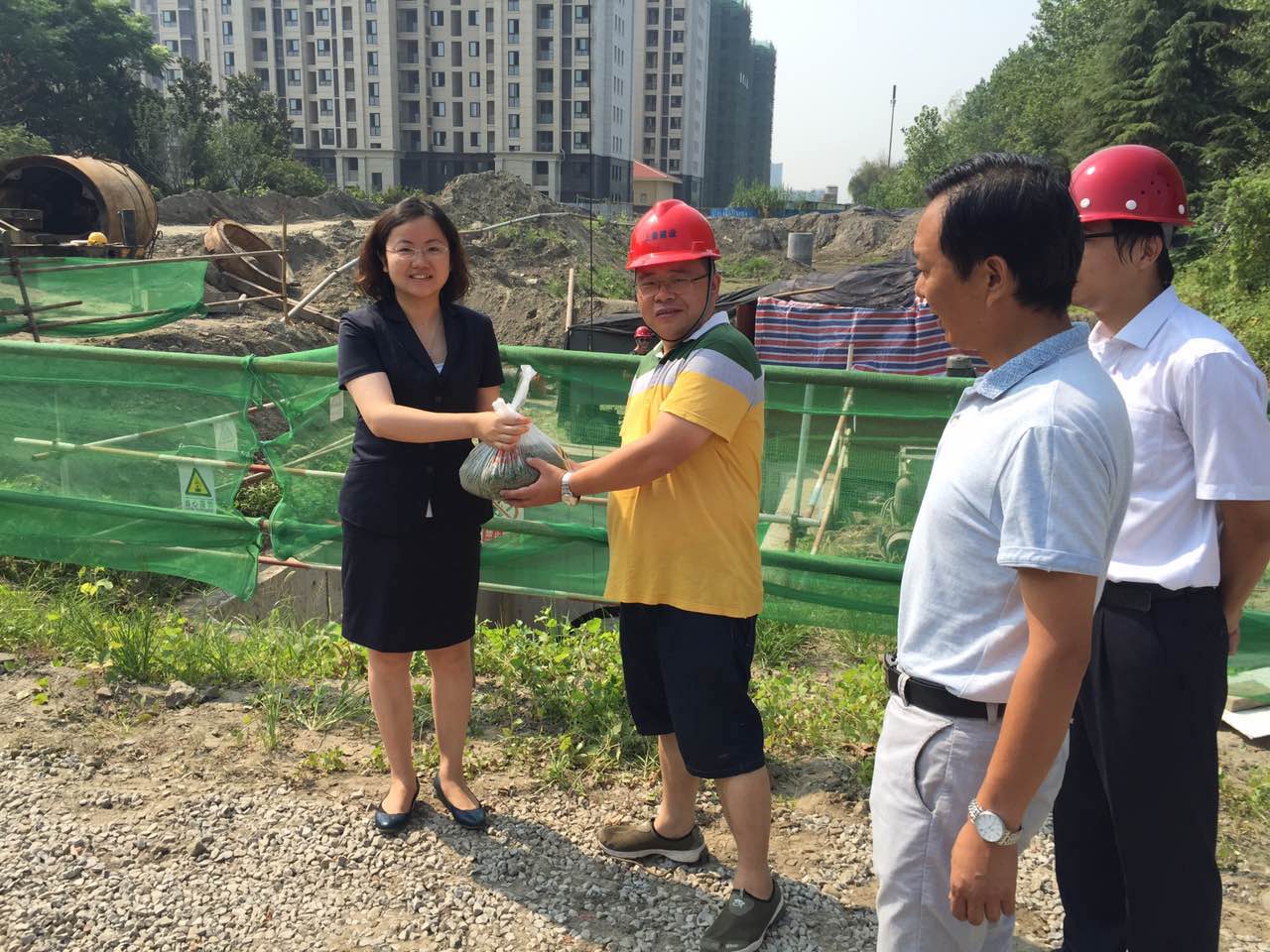 7月29日上午,公司领导班子分为两组,分别来到扬子江南路污水干管改造工程工地、七里沟工程建设工地、汤汪污水处理厂机修现场,慰问看望烈日下正在施工和检修的作业人员,将防暑降温用品送到一线职工手中,让他们在酷暑中感受到舒心的凉意,同时也对他们酷暑中奋战一线的精神表示敬意。
