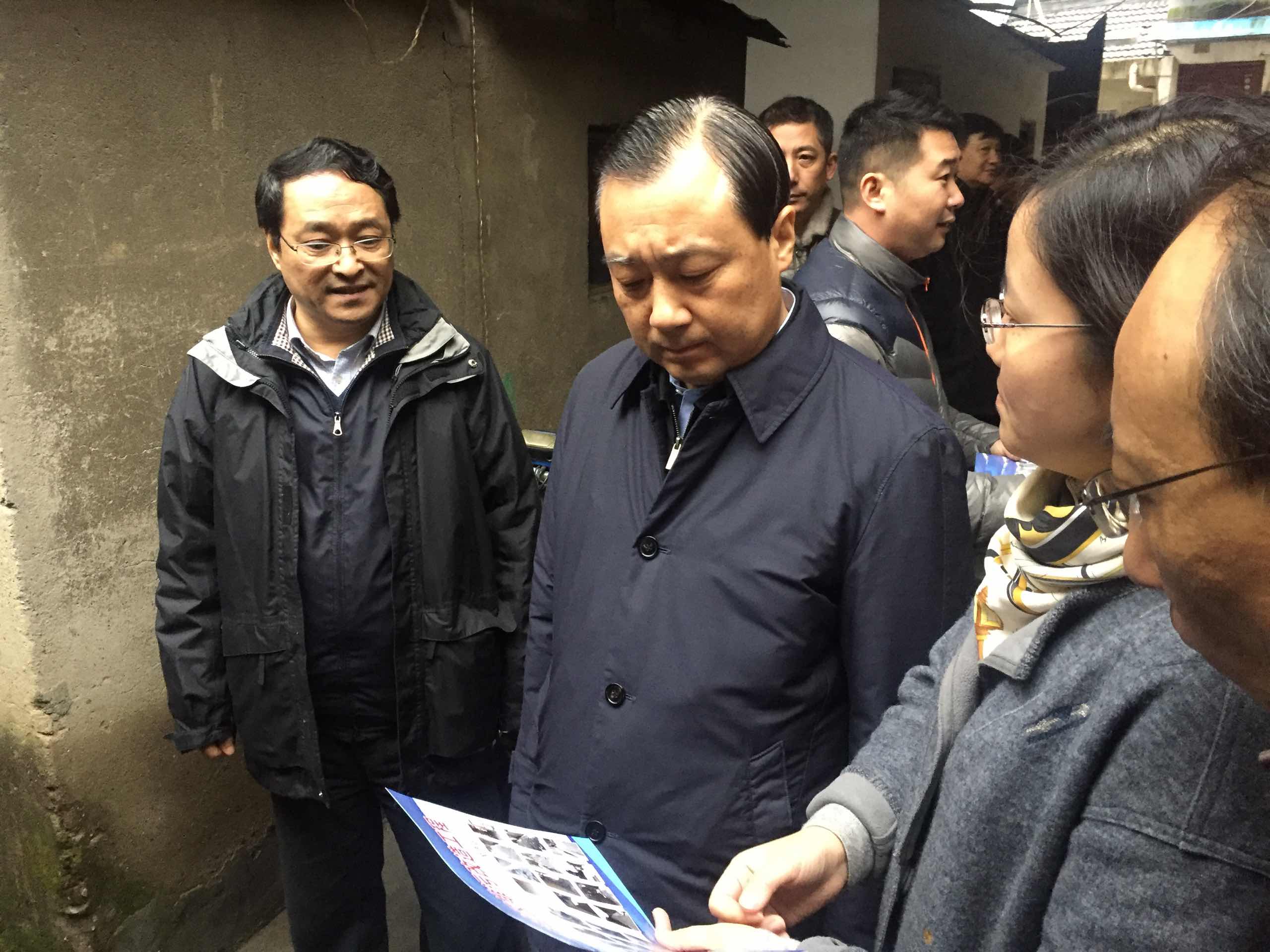 1月7日下午,市委书记谢正义一行来到广陵区古旗亭社区等地调研老城区排污改造情况。城控集团董事长刘晓明、副总经理周平以及广陵区有关领导陪同调研。公司总经理张颖在现场介绍了老城区排污改造的实施情况。