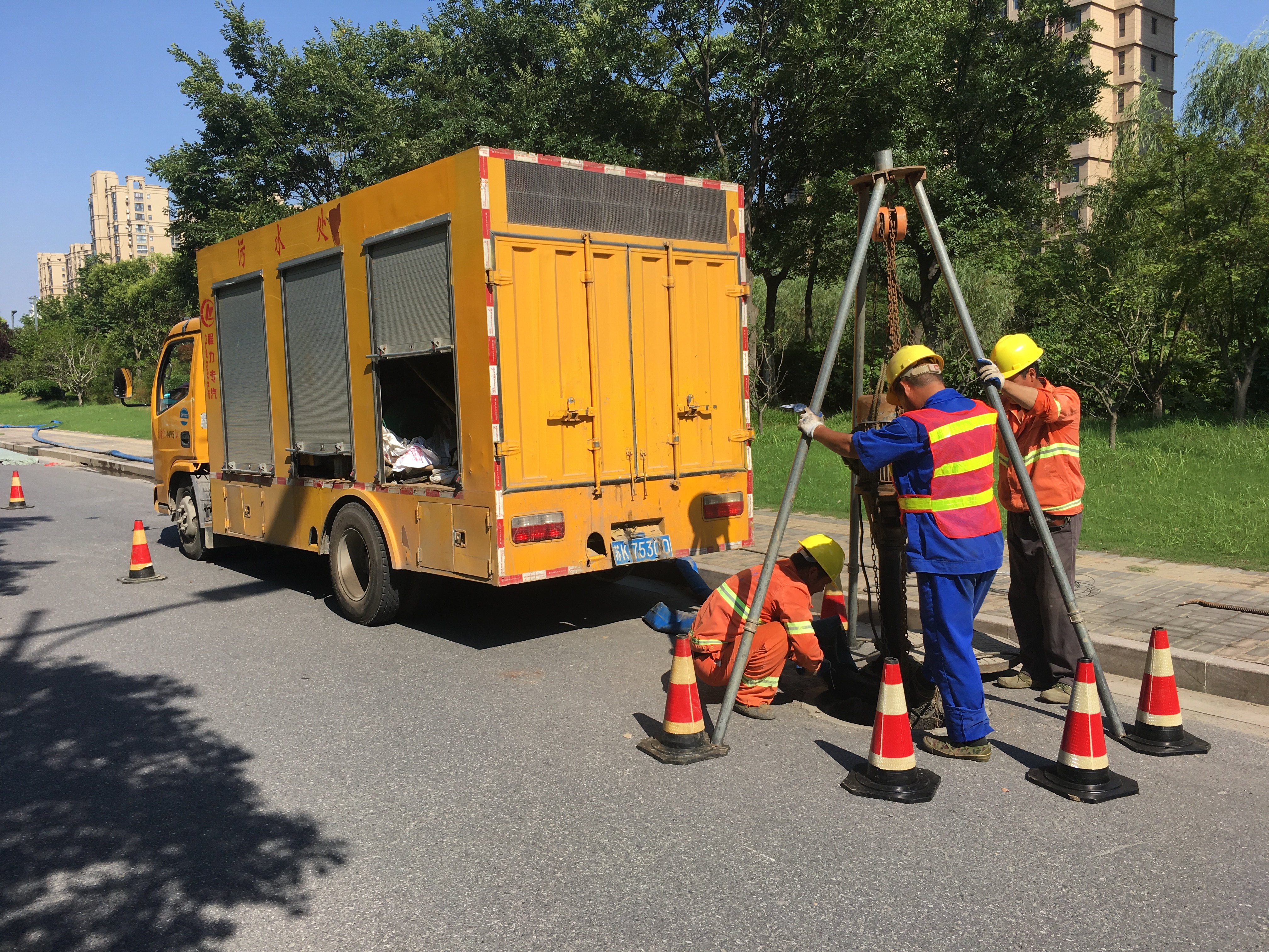 在广陵产业园大众港路,施工人员正加班加点的进行问题管网维修工作,利用机器人设备进行下井查漏,对漏渗点进行精确定位,制定最佳维修方案。现场负责人表示,面对随时来临的大雨,他们将加班加点,严格遵守操作规程,尽快完成维修施工,恢复此处的正常排水。