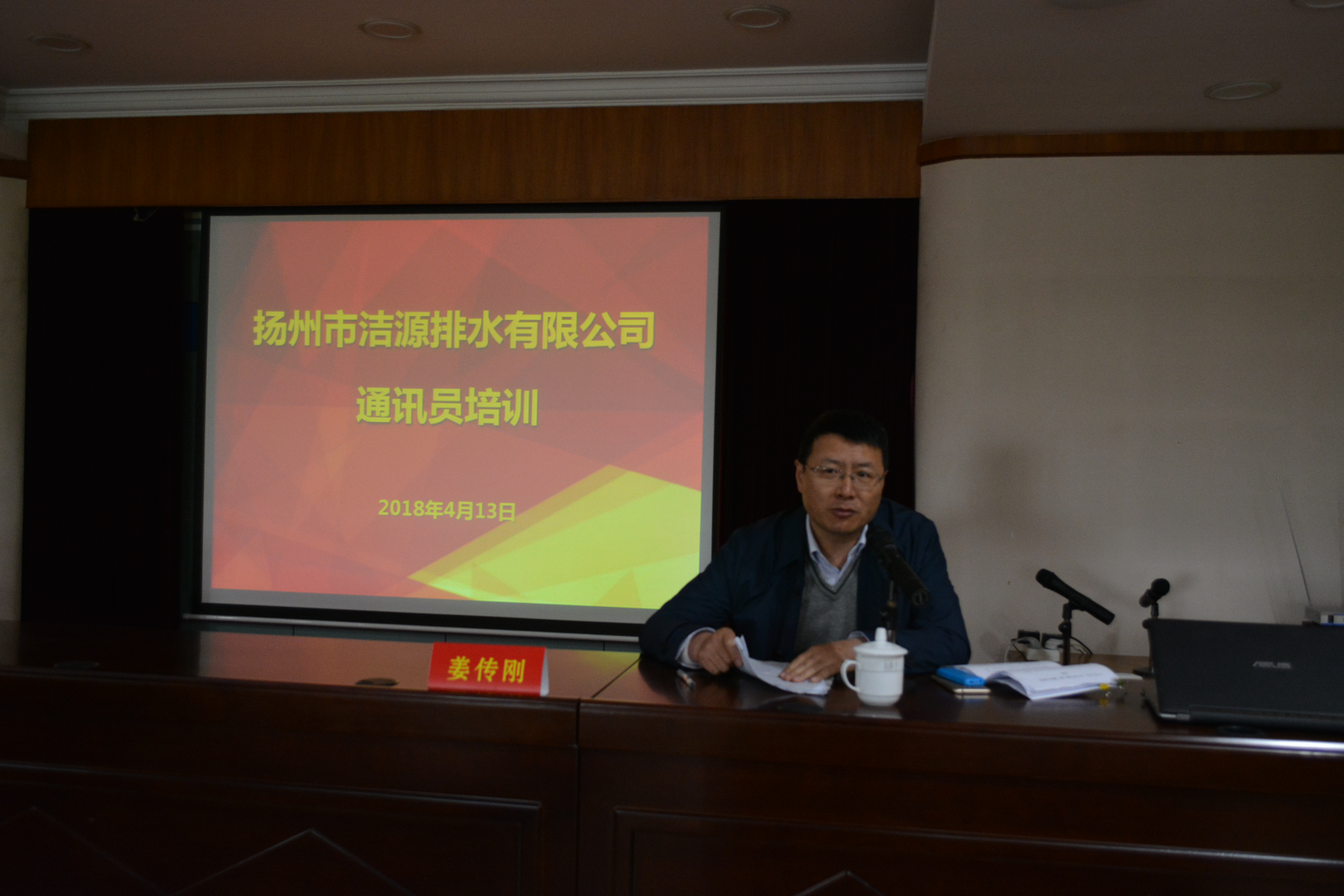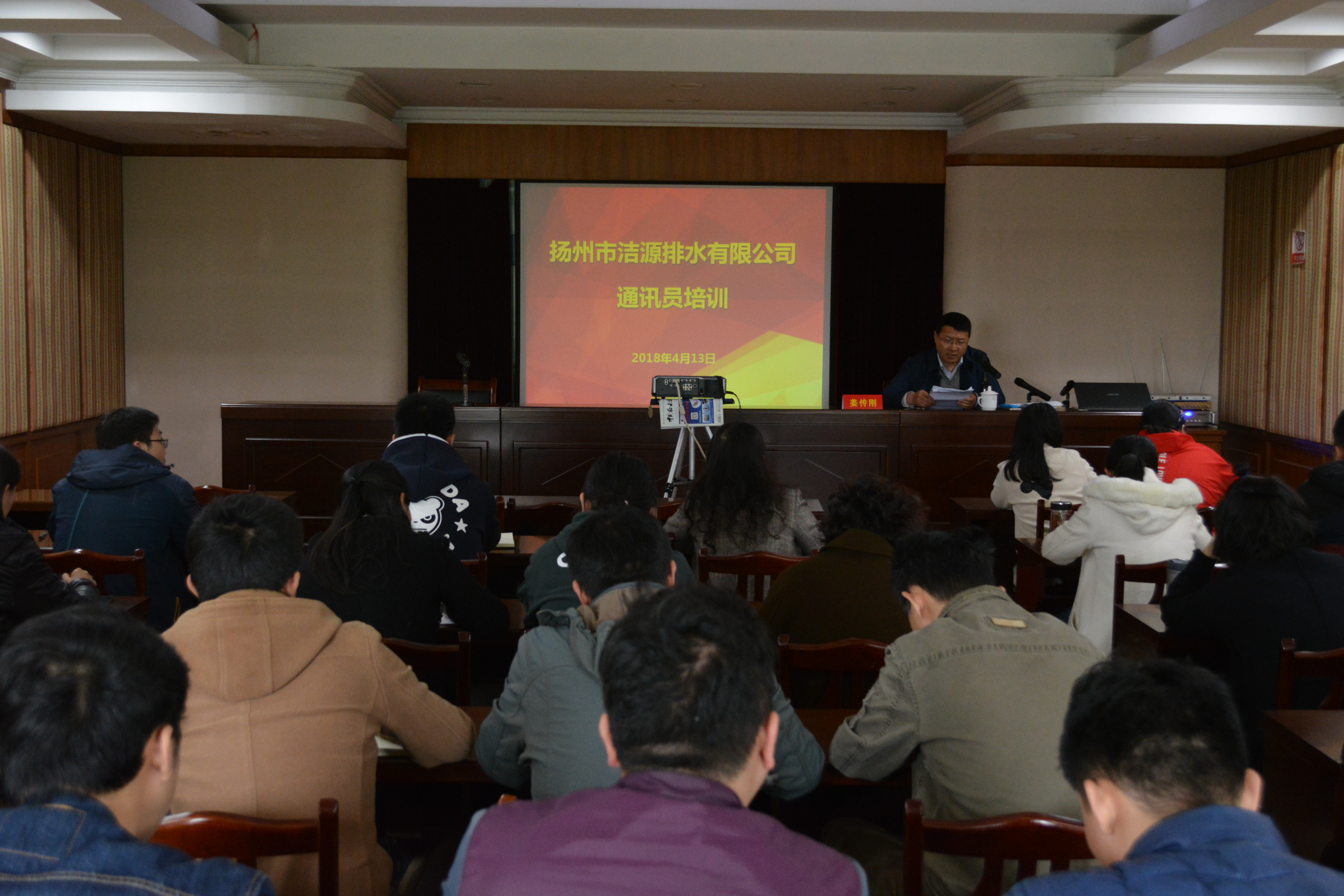 为进一步提高洁源公司通讯员队伍新闻采写能力,提升公司整体宣传水平,根据年度职工培训计划安排,4月13日下午,洁源公司邀请扬州晚报资深记者姜传刚为全体中层干部及通讯员进行了通讯员培训讲座。