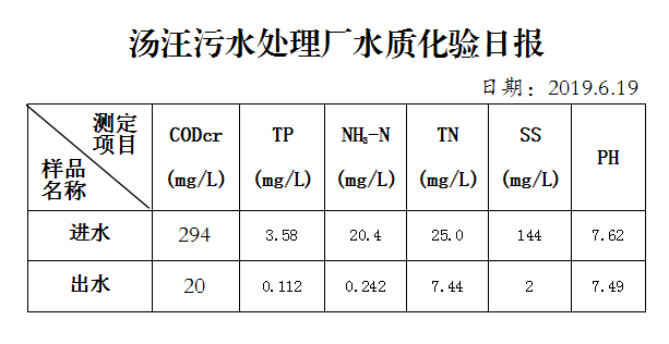 汤汪污水处理厂水质化验日报(2019.6.19)