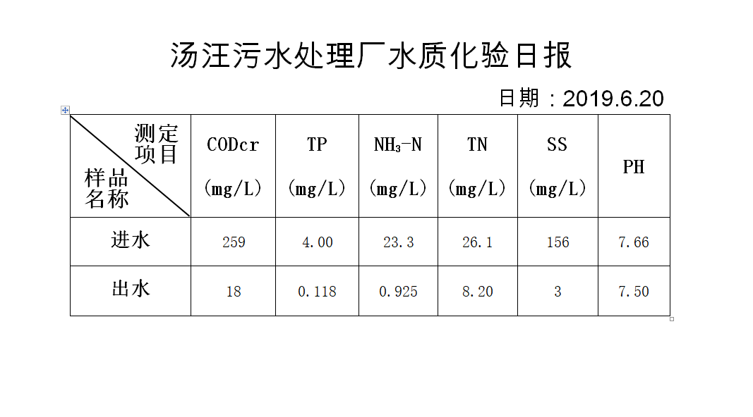 汤汪污水处理厂水质化验日报(2019.6.20)