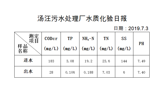 汤汪污水处理厂水质化验日报(2019.7.3)