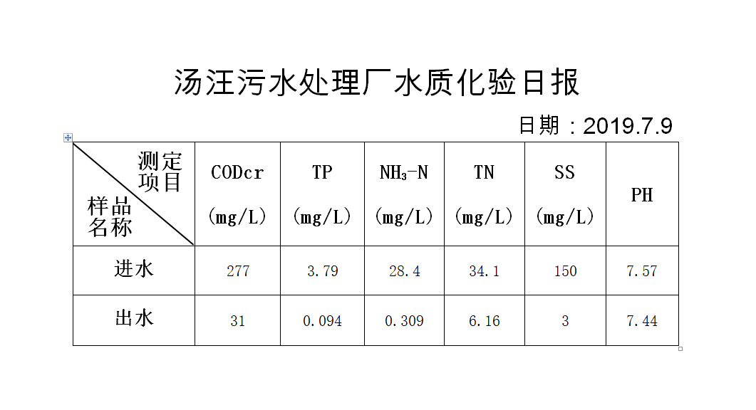 汤汪污水处理厂水质化验日报(2019.7.9)
