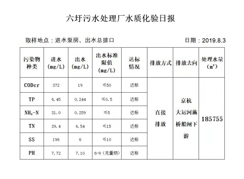 六圩污水处理厂水质化验日报(2019.8.3)