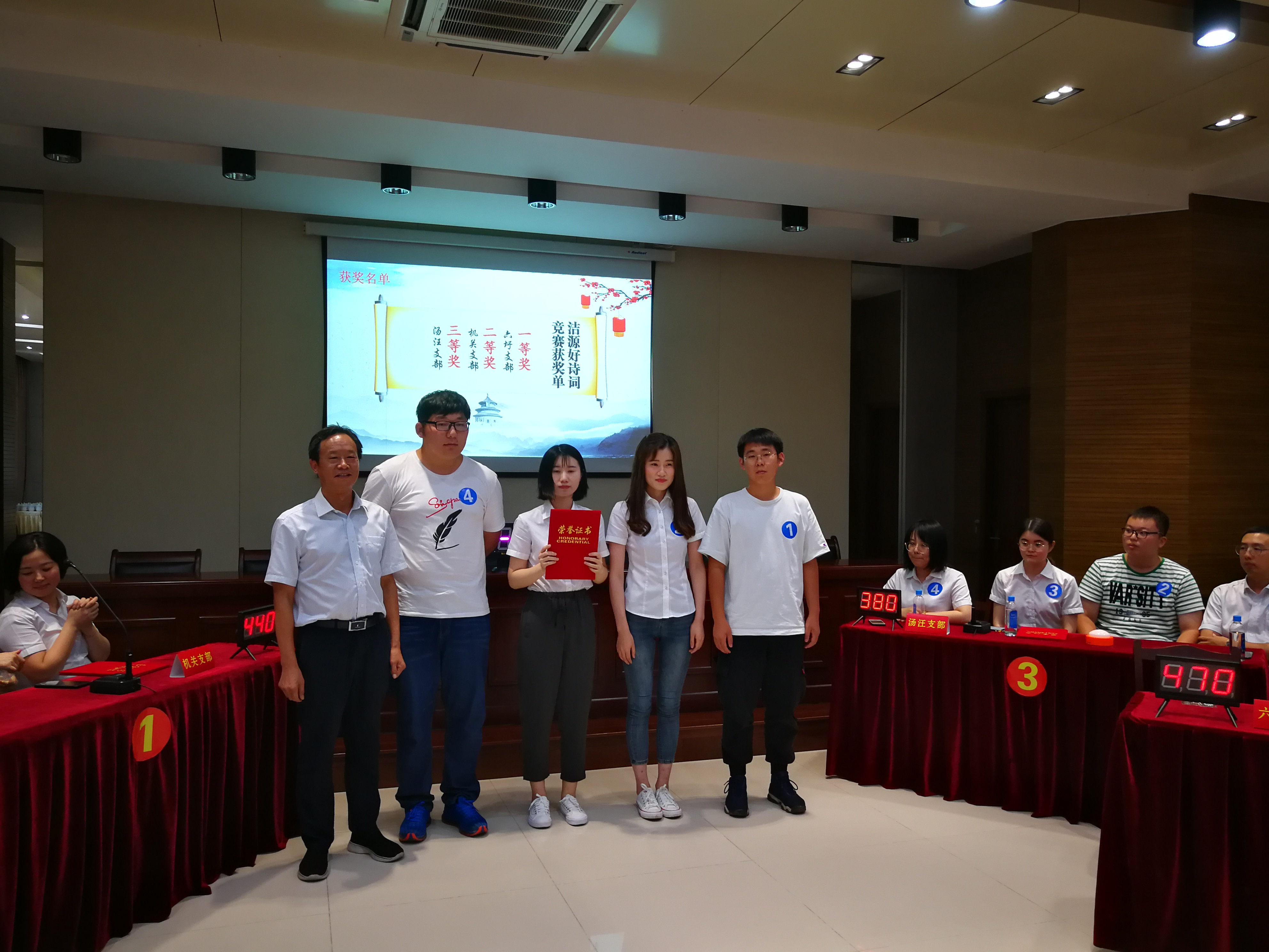 本次“洁源好诗词”竞赛活动,受到职工们的积极响应,经过选拔,共有来自三个党支部的12名选手参加了竞赛。本次竞赛题型共分为必答题、抢答题、风险题、观众互动题。比赛题目内容丰富、形式多样,比赛现场气氛紧张而激烈,选手淡定从容、出口成章,应答自如、斗智斗勇,展现了良好的文化素养。经过近两个小时的紧张角逐,最终六圩厂党支部代表队获得一等奖、机关党支部代表队获得二等奖、汤汪厂党支部代表队获得三等奖。
