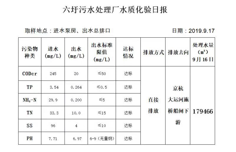 六圩污水处理厂水质化验日报(2019.9.17)