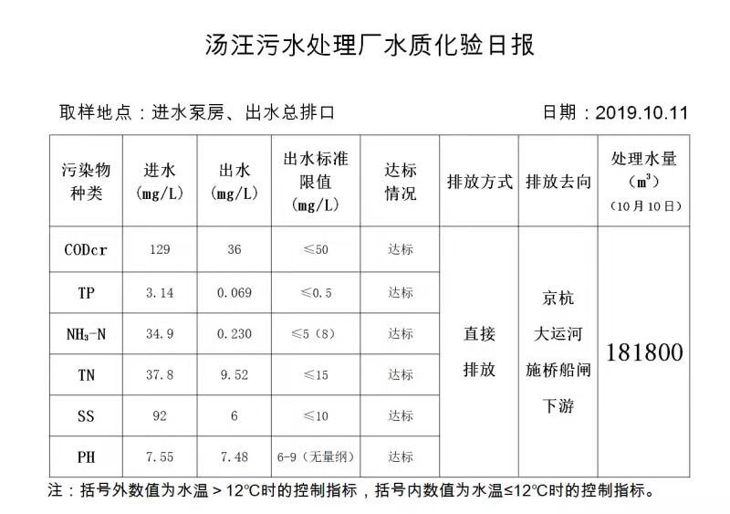 汤汪污水处理厂水质化验日报(2019.10.11)