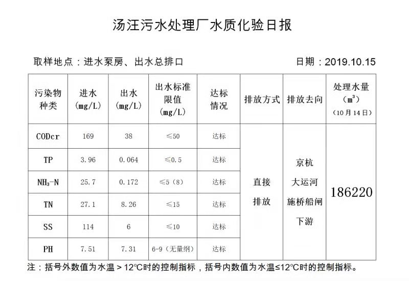 汤汪污水处理厂水质化验日报(2019.10.15)