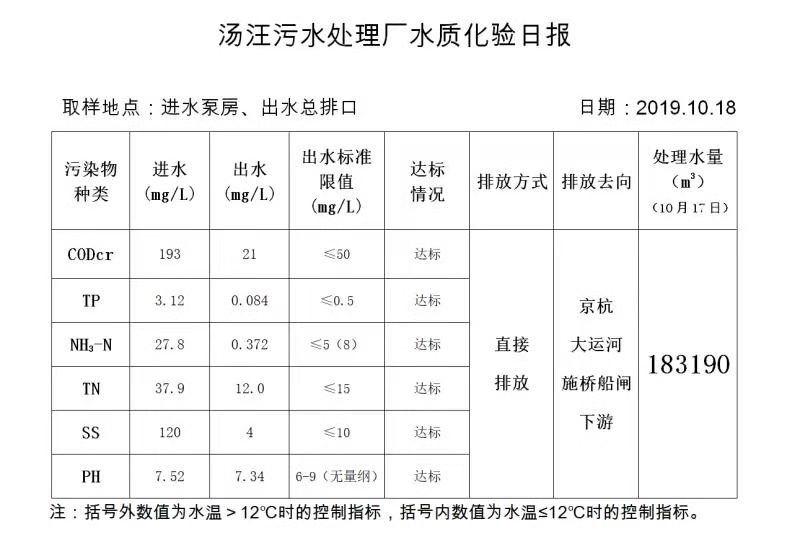 汤汪污水处理厂水质化验日报(2019.10.18)