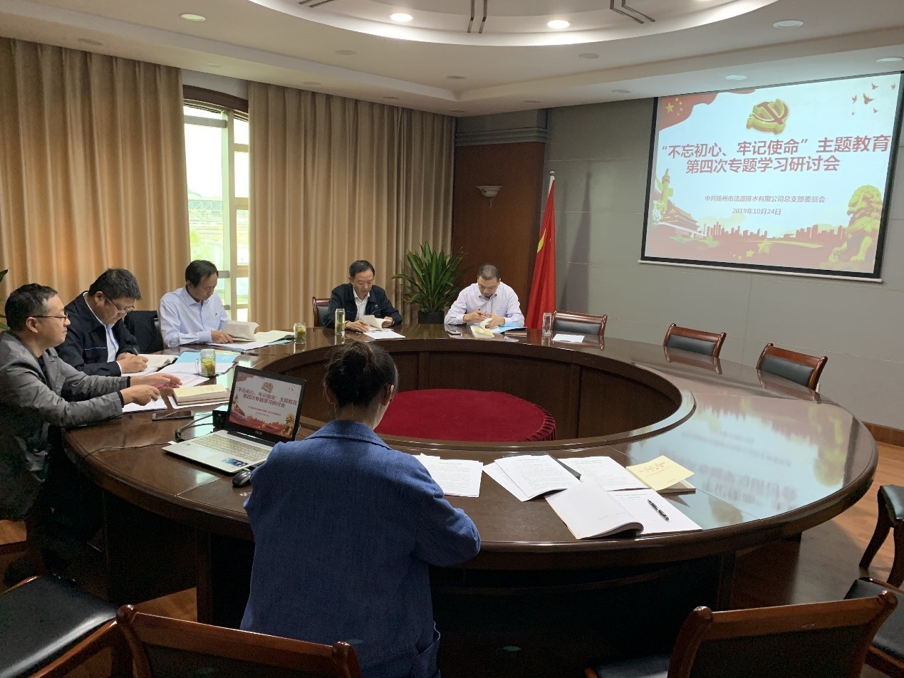 10月24日,洁源排水公司党总支召开了“不忘初心、牢记使命”主题教育第四次集中学习研讨会。公司领导班子全体成员参加会议,会议由洁源排水公司党总支书记、总经理刘义忠主持。