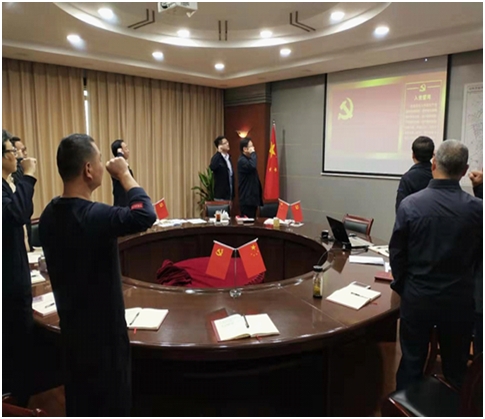支部书记尚庆波同志带领全体党员重温了入党誓词,并向全体党员汇报了近期主题教育学习心得 ,随后全体党员观看了《十九大党章知识精粹》系列微动漫和电教片《忠诚》。
