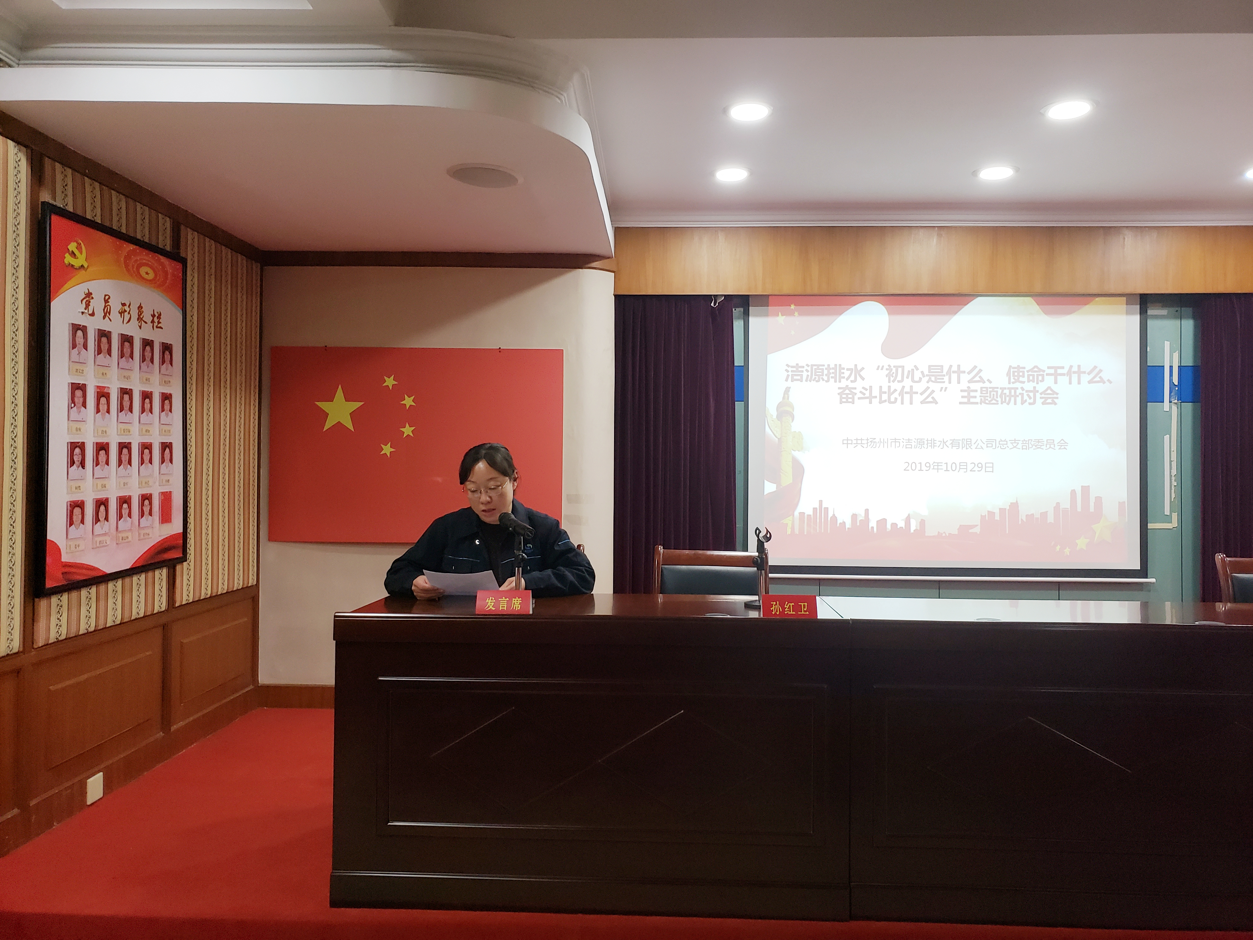 10月29日下午,洁源排水公司党总支开展了“初心是什么、使命干什么、奋斗比什么”主题研讨活动。公司领导班子全体成员、中层干部、全体党员及入党积极分子共计40余人参加活动。