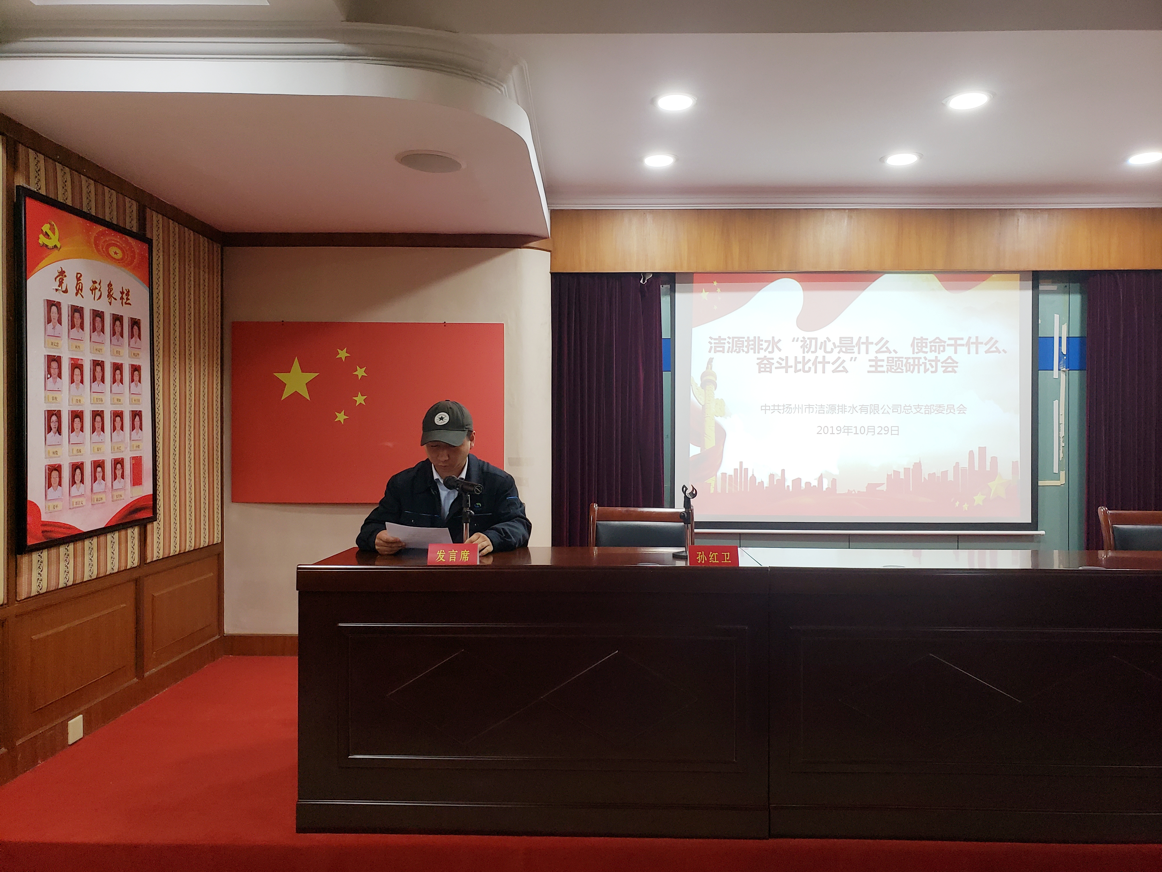 10月29日下午,洁源排水公司党总支开展了“初心是什么、使命干什么、奋斗比什么”主题研讨活动。公司领导班子全体成员、中层干部、全体党员及入党积极分子共计40余人参加活动。