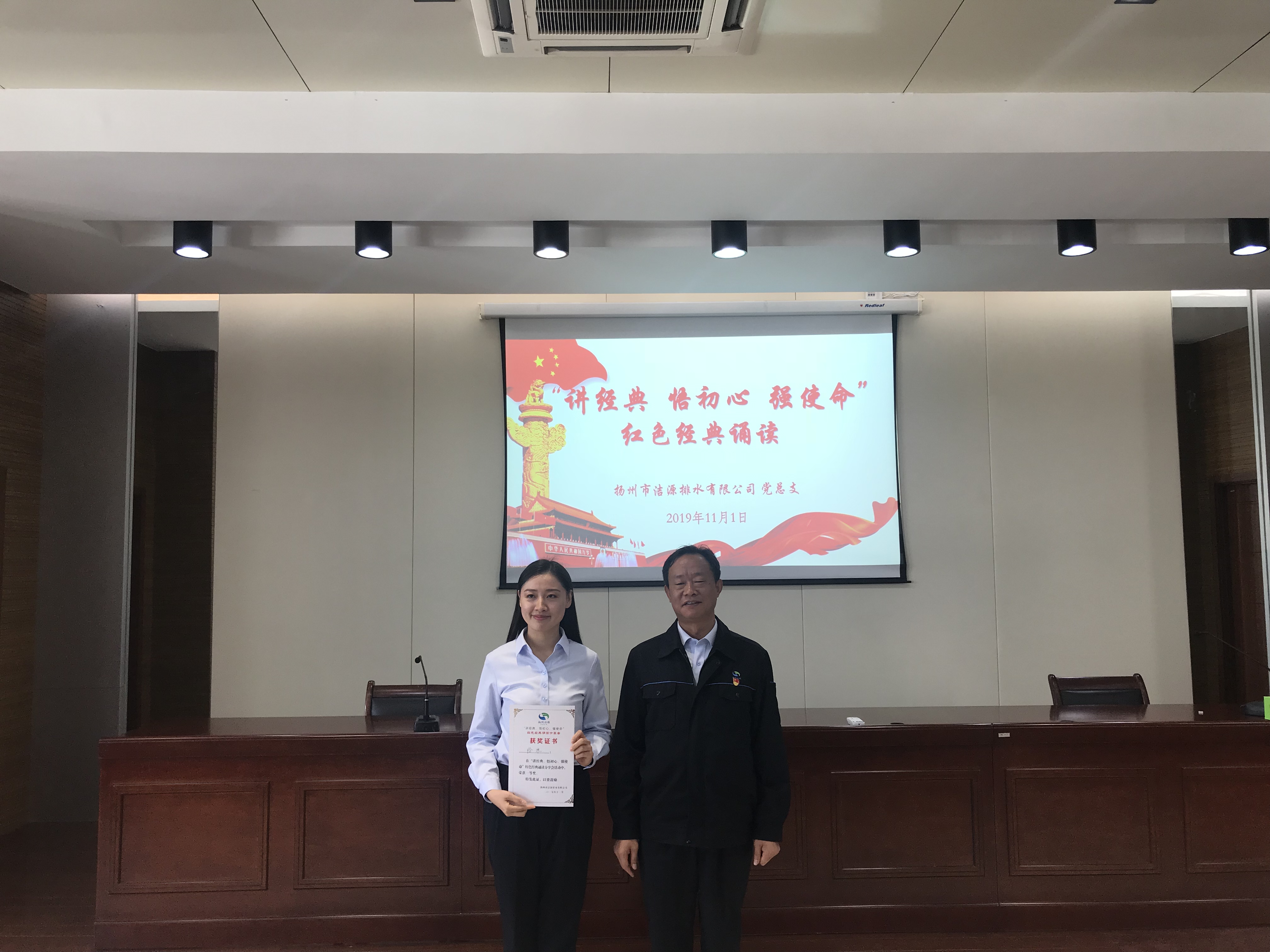 为传承红色经典文化,弘扬革命精神,根据公司“不忘初心、牢记使命”主题教育活动安排,11月1日上午,洁源排水公司党总支在六圩污水处理厂组织开展了“讲经典、悟初心、强使命”红色经典诵读活动。