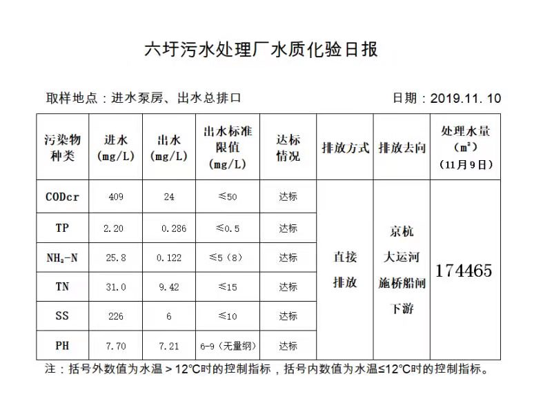 六圩污水处理厂水质化验日报(2019.11.10)