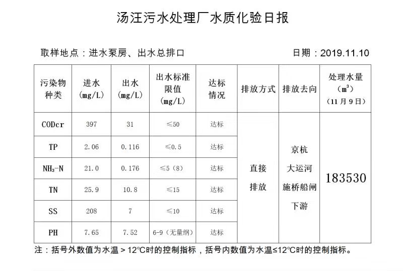 汤汪污水处理厂水质化验日报(2019.11.10)