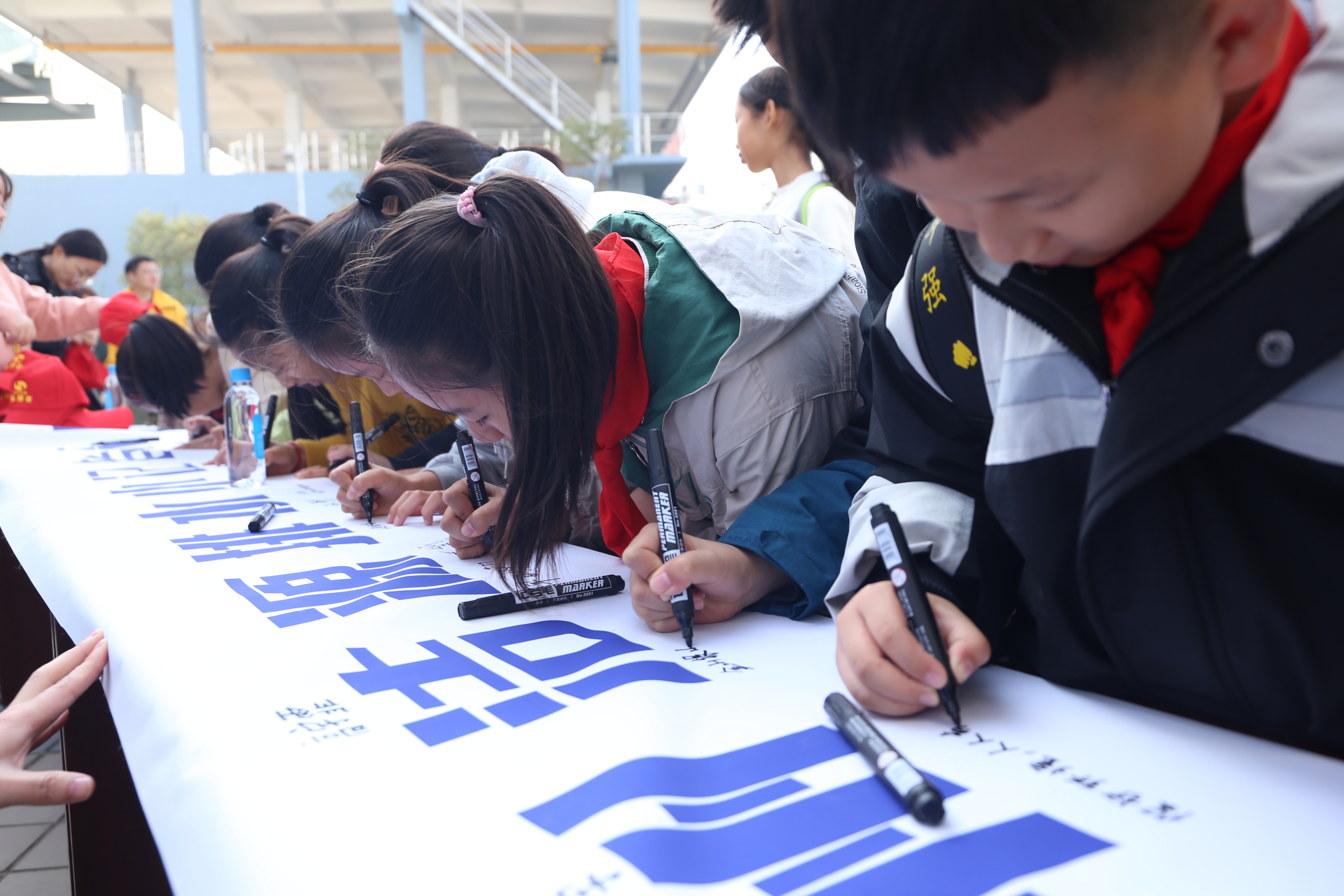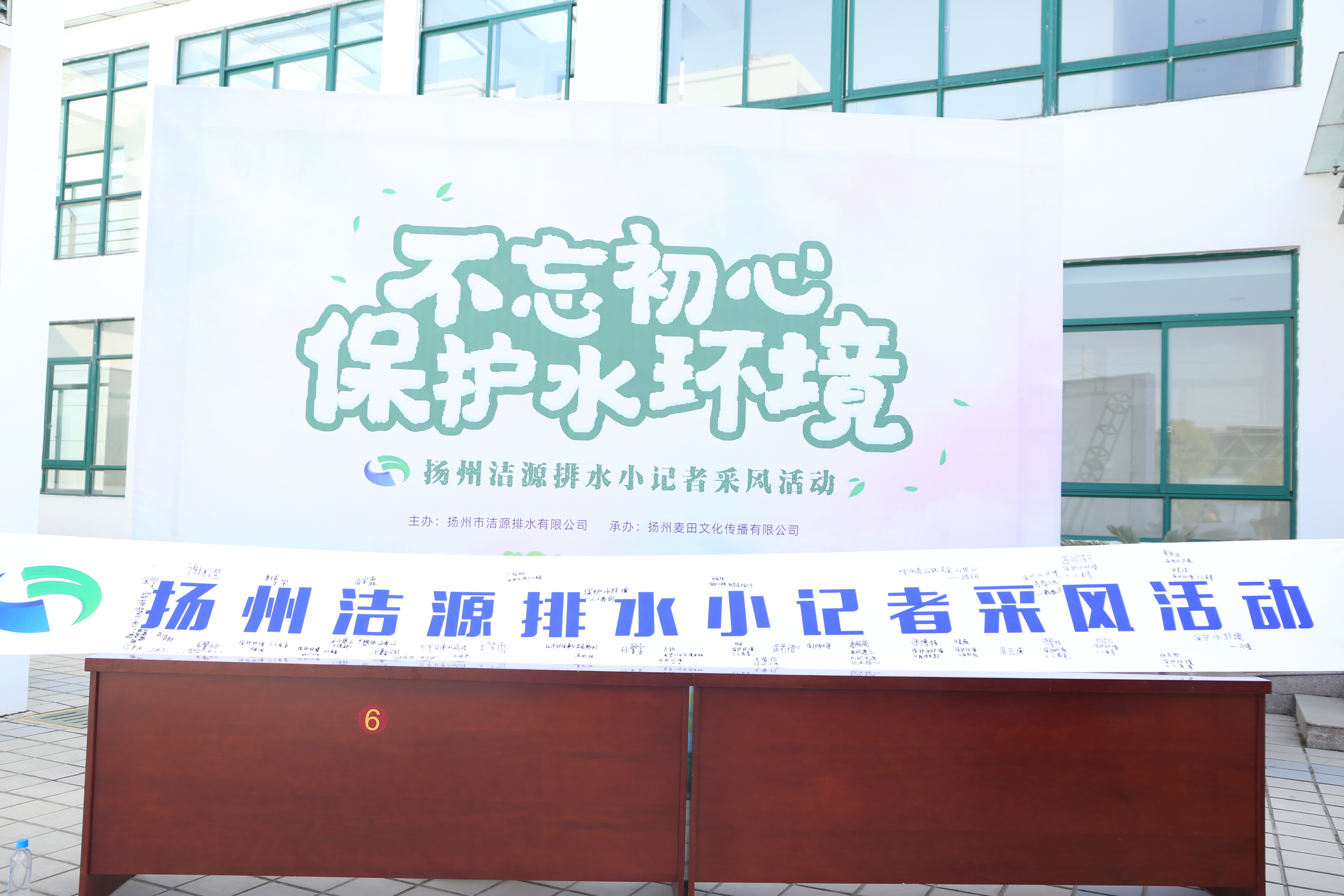上午9:30,小记者们来到六圩污水处理厂,在条幅上写下环保宣言。紧接着,党总支书记、总经理刘义忠为大家介绍了生活污水经过层层处理最终变成纯净透明的清水的大概过程。