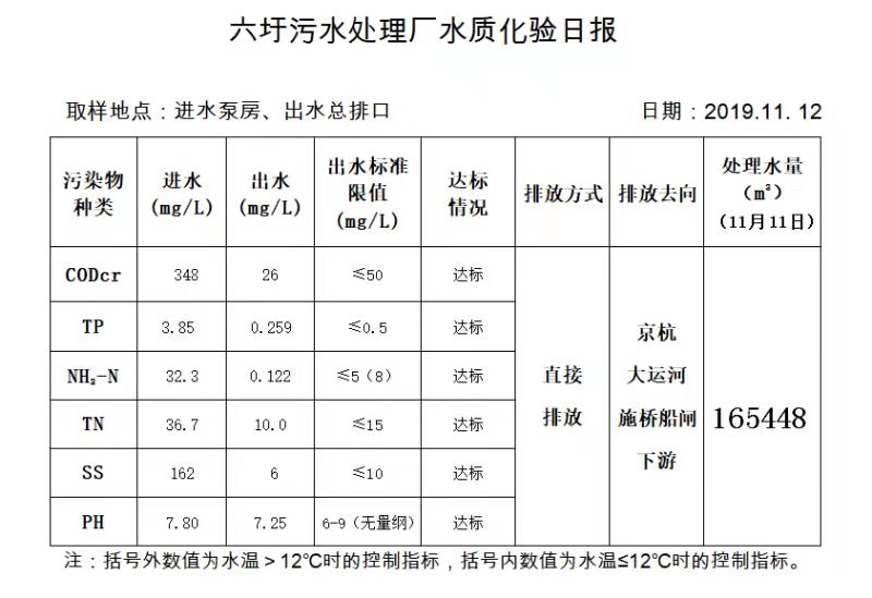 六圩污水处理厂水质化验日报(2019.11.12)