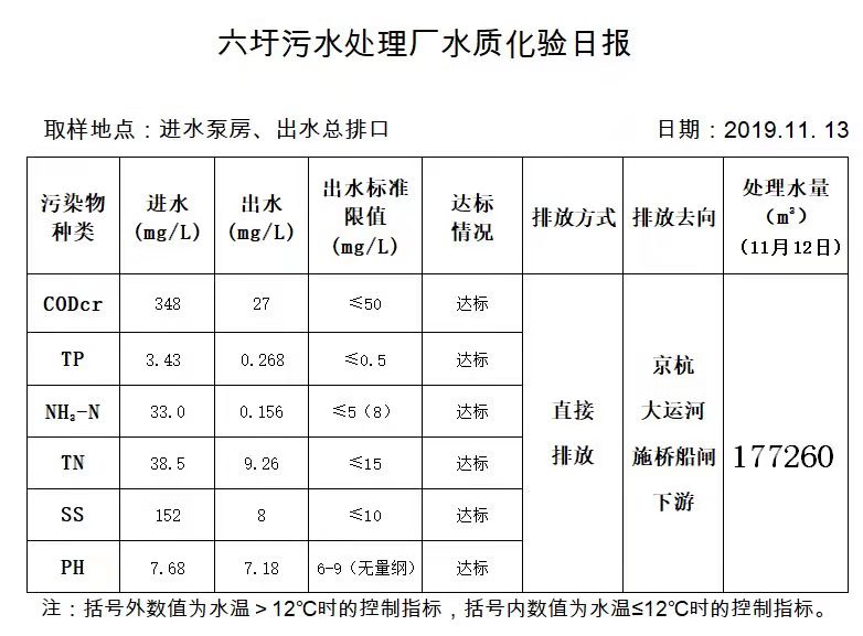六圩污水处理厂水质化验日报(2019.11.13)