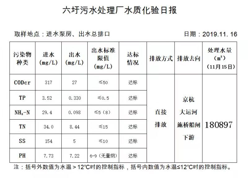 六圩污水处理厂水质化验日报(2019.11.16)