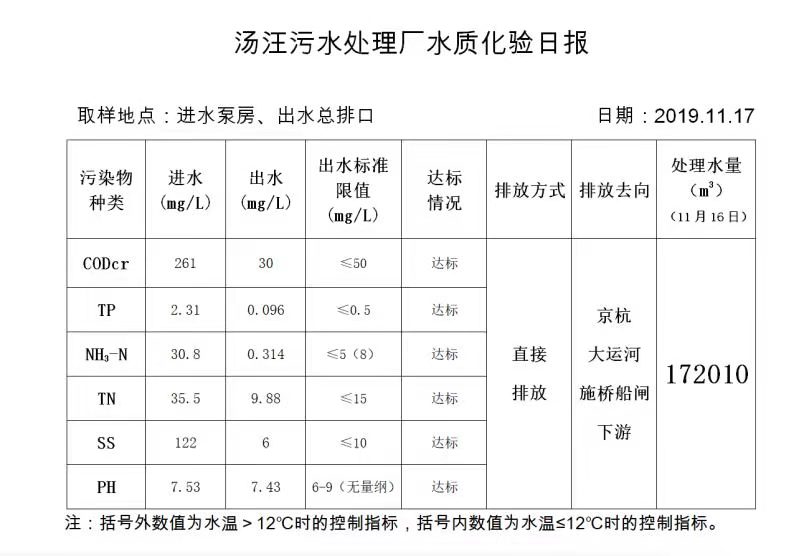 汤汪污水处理厂水质化验日报(2019.11.17)