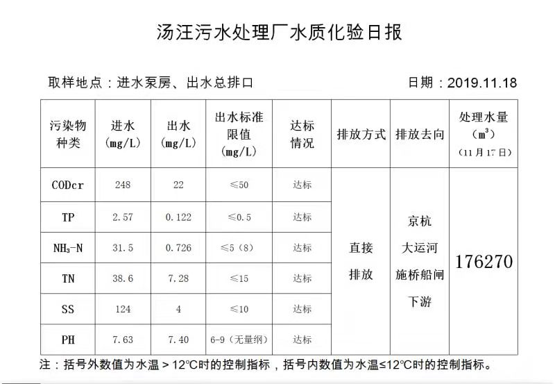 汤汪污水处理厂水质化验日报(2019.11.18)