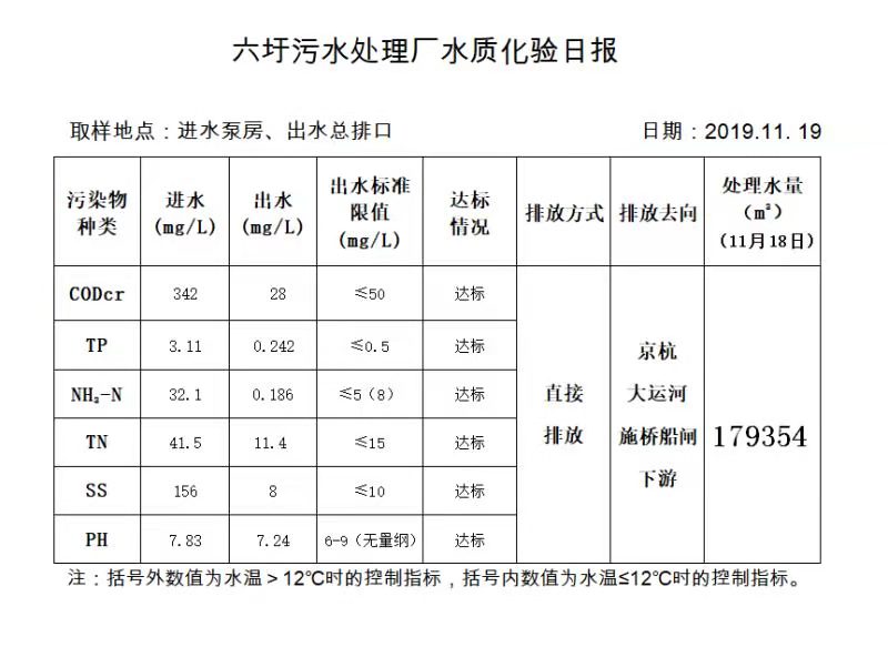 六圩污水处理厂水质化验日报(2019.11.19)