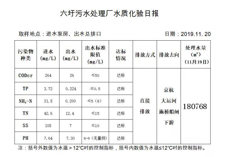 六圩污水处理厂水质化验日报(2019.11.20)