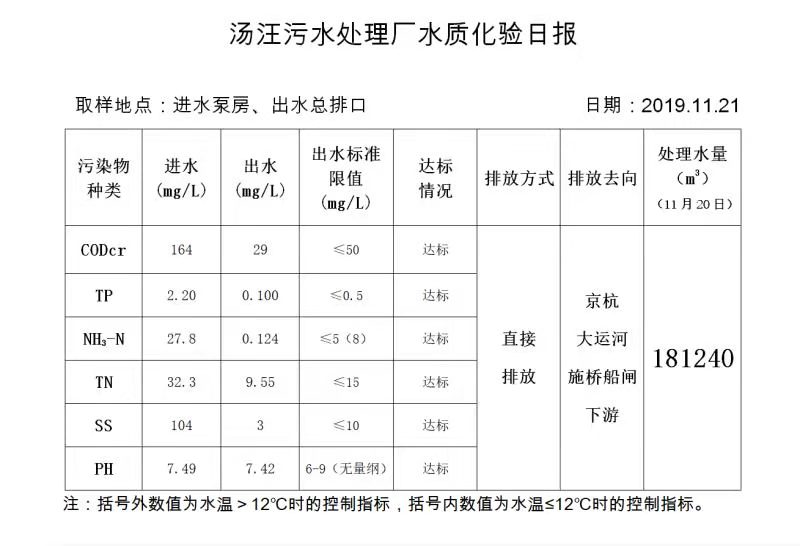 汤汪污水处理厂水质化验日报(2019.11.21)