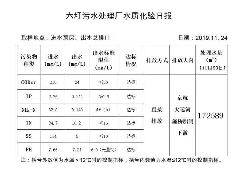 六圩污水处理厂水质化验日报(2019.11.24)