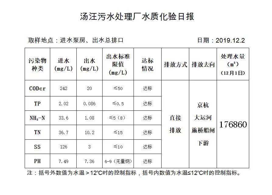 汤汪污水处理厂水质化验日报(2019.12.2)