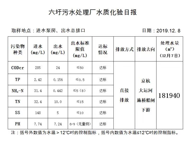 六圩污水处理厂水质化验日报(2019.12.8)