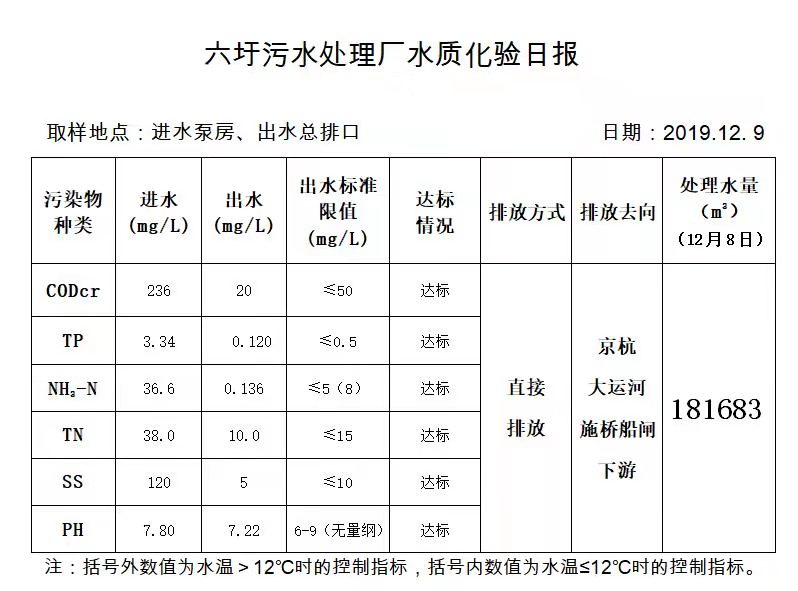 六圩污水处理厂水质化验日报(2019.12.9)