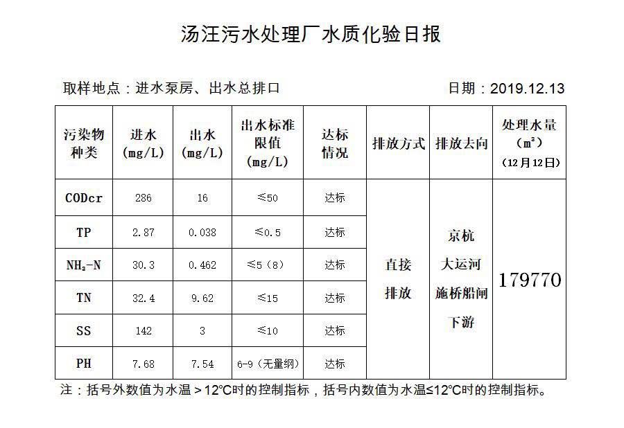 汤汪污水处理厂水质化验日报(2019.12.13)