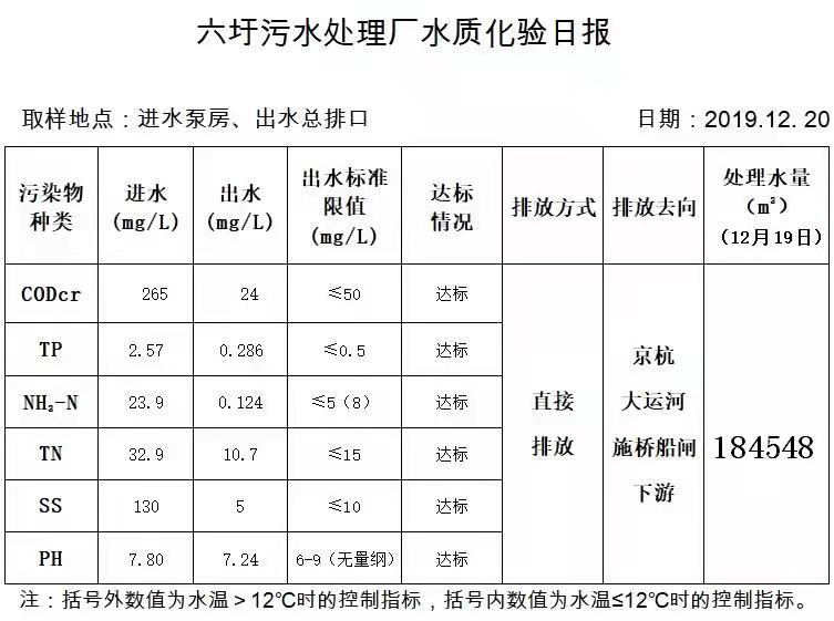 六圩污水处理厂水质化验日报(2019.12.20)