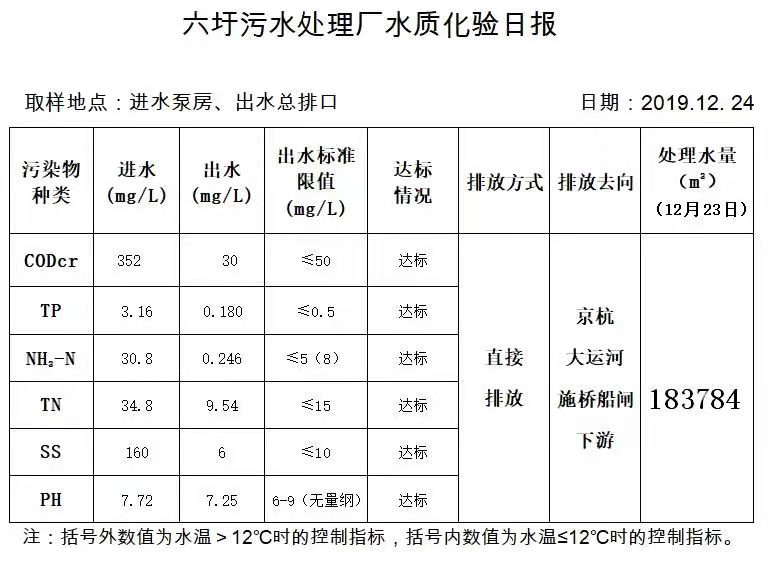 六圩污水处理厂水质化验日报(2019.12.24)