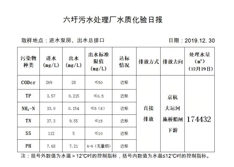 六圩污水处理厂水质化验日报(2019.12.30)