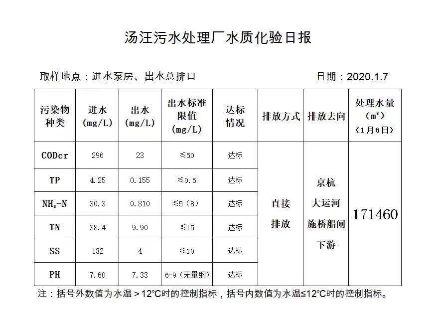 汤汪污水处理厂水质化验日报(2020.1.7)