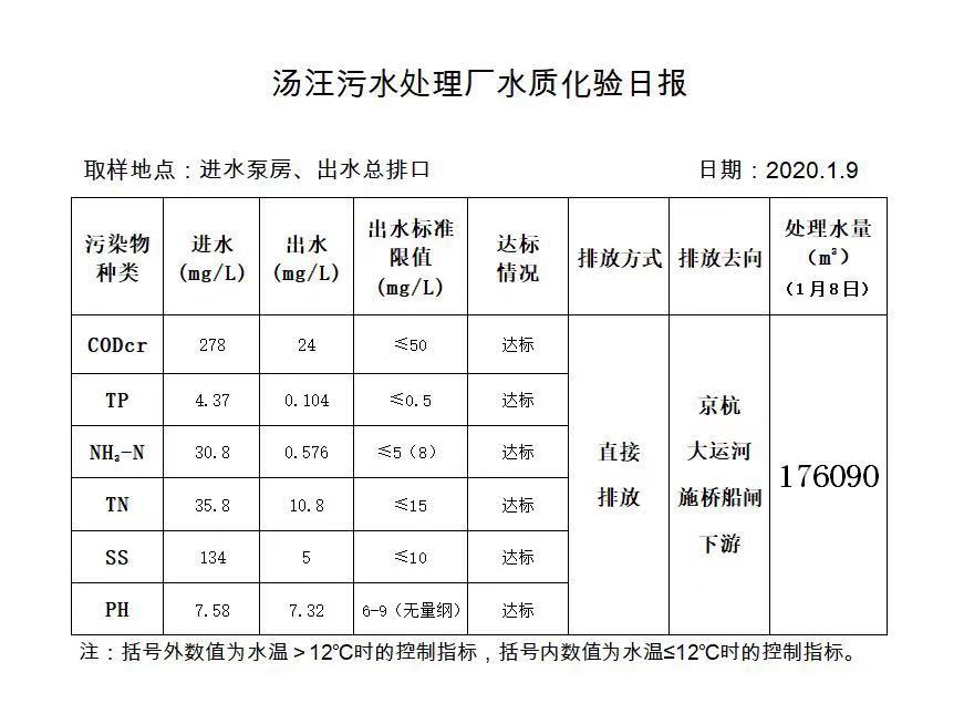 汤汪污水处理厂水质化验日报(2020.1.9)