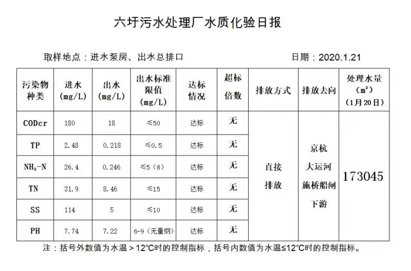 六圩污水处理厂水质化验日报(2020.1.21)