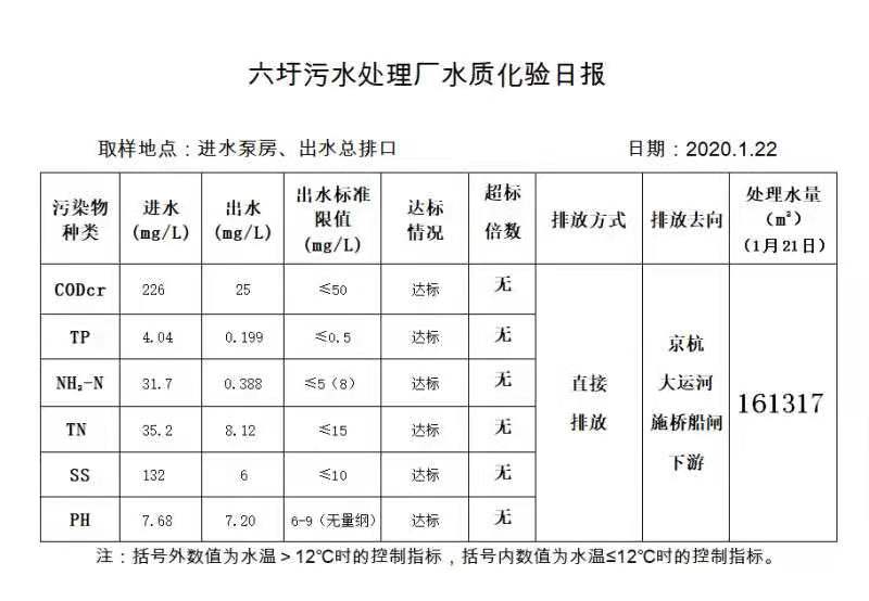 六圩污水处理厂水质化验日报(2020.1.22)