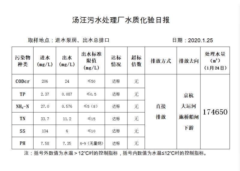 汤汪污水处理厂水质化验日报(2020.1.25)