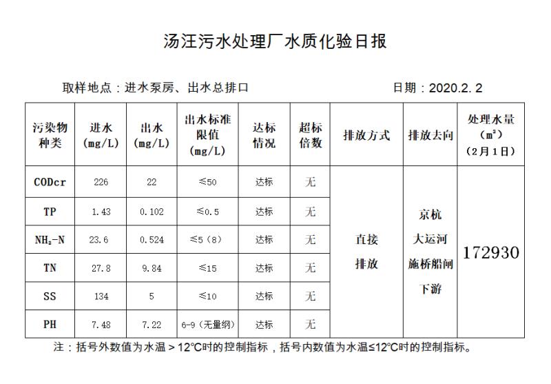汤汪污水处理厂水质化验日报(2020.2.2)