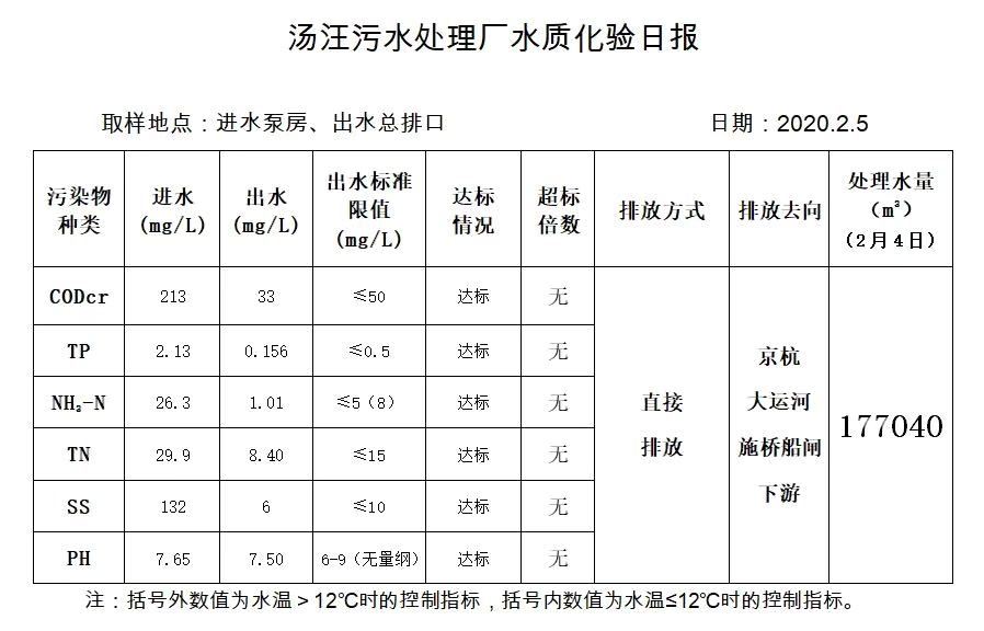 汤汪污水处理厂水质化验日报(2020.2.5)